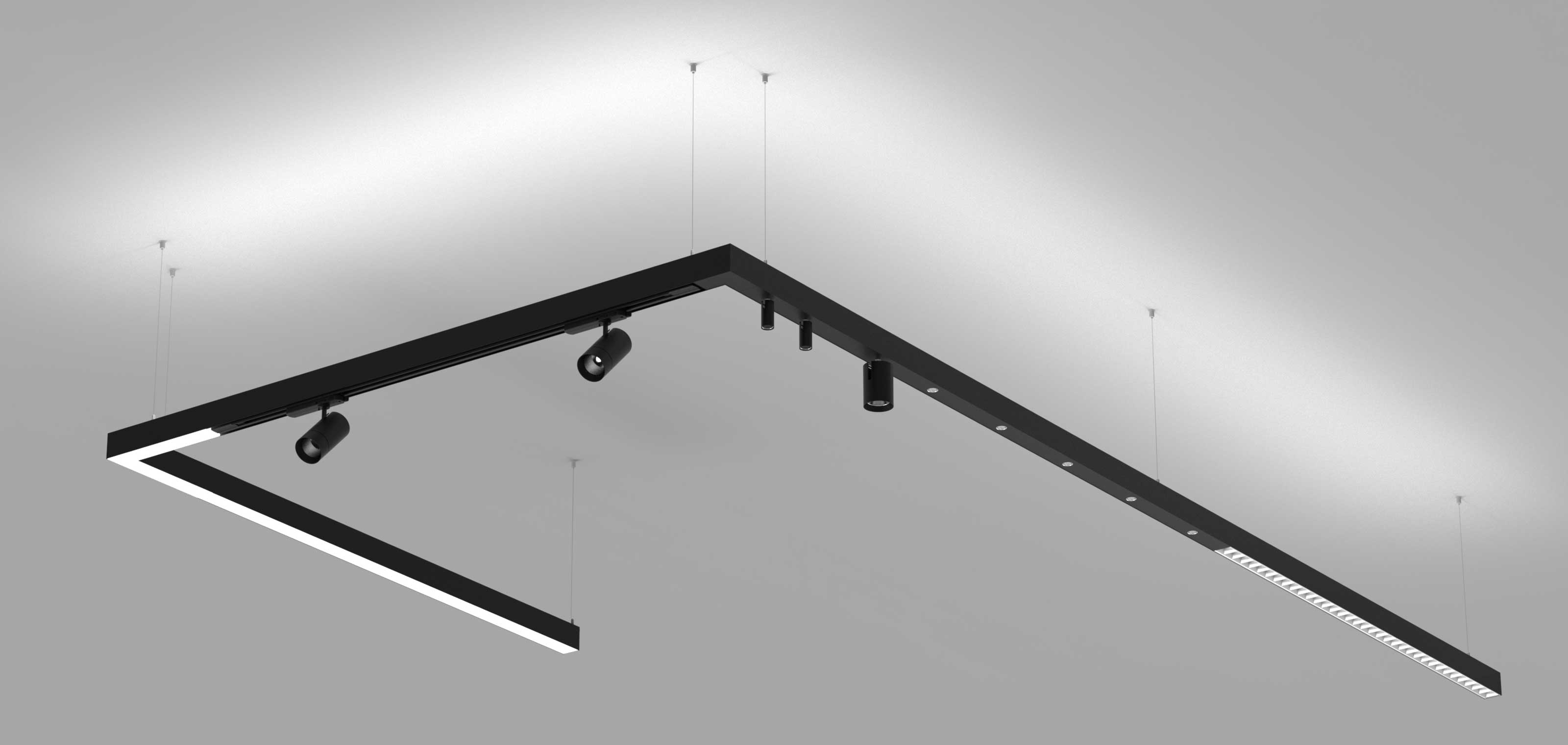 Indirect lighting can be realised in combination with the 3-phase module. (simple click-in mounting)